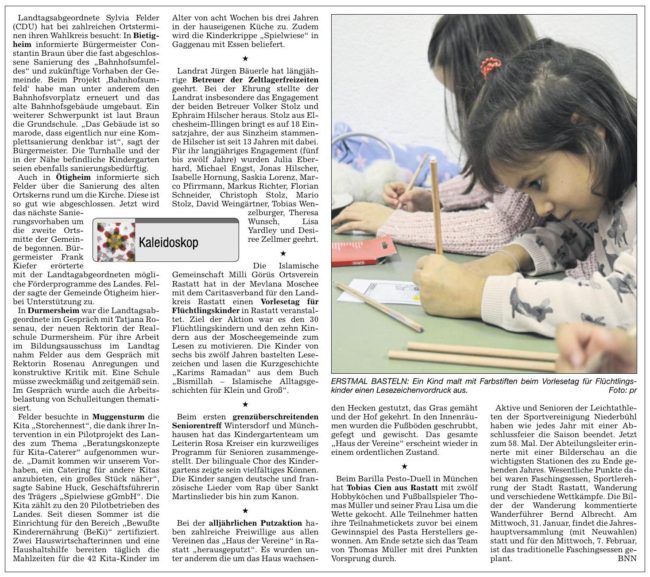 „Spielwiese“ in Pilotprojekt des Landes mit aufgenommen Pressemitteilungen, StartseiteVon Maren Schmidt-Peker6. Dezember 2017Erfolgreiche Intervention der Landesabgeordneten Sylvia Felder