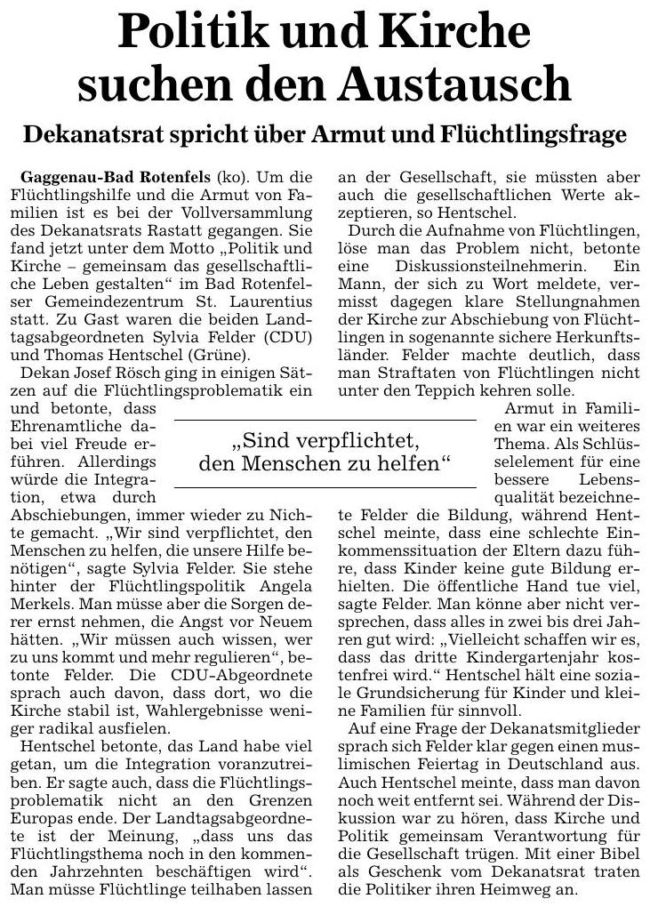 Die Landtagsabgeordnete des Wahlkreises Rastatt, Sylvia M. Felder, freut sich über die Unterstützung von Kommunen durch das Land im Bereich der Quartiersförderung. Zwei von 53 Projekten, die im Rahmen des Ideenwettbewerbs ‘Quartier 2020 – Gemeinsam. Gestalten’ eingereicht wurden, kommen aus dem Wahlkreis. Au am Rhein erhält 55.000€ für die Ausarbeitung eines integrierten Gesamtkonzepts für die…